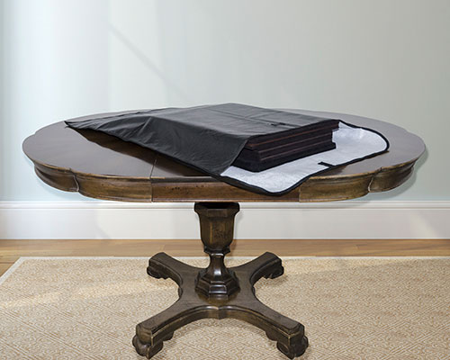 our specially designed Table Pad Storage Bags! One table pad storage bag will hold a complete set of table pads including the leaf pads for most size tables.